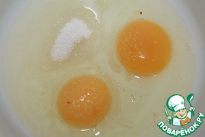 Яйцо взбиваем с солью и сахаром. Я взбиваю миксером, можно венчиком.