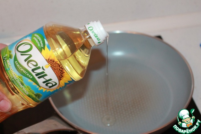 Сковороду накаляем на максимальном огне. Добавляем немного растительного масла ТМ "Олейна"классическое.