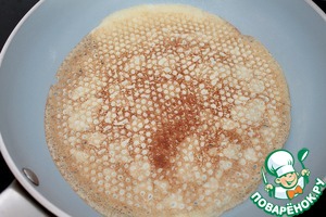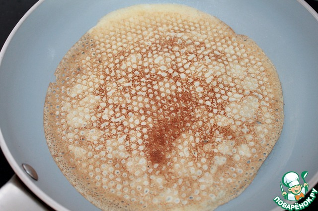Сверху накрываем еще одним блинчиком. Снова начинку и так пока блинчики не закончатся или пока вам не будет достаточно. Лучше делать их не очень высокими.