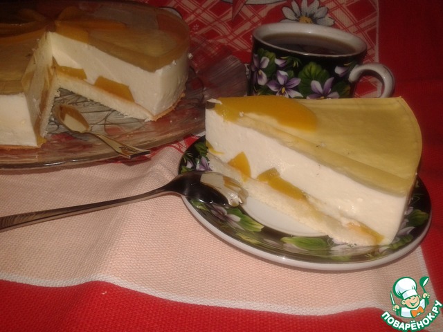 Нежный, воздушный, легкий творожный тортик с персиками. Готовила для мужа ко дню Влюбленных. Он не мог оторваться! Съел сразу три кусочка. Попробуйте это творожное счастье).