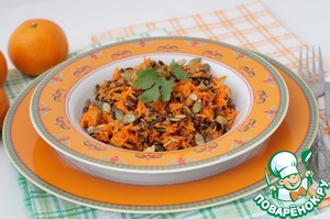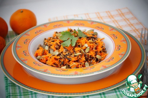 Благодаря конкурсу открыла для себя дикий рис. Он волшебный! Вкусный, питательный, полезный, и смотрится в блюдах эффектно. В салате с рыжей морковью выглядит как полоски на шкуре тигра) Сам салат превосходен - заправка на основе мандаринового сока делает простое казалось бы блюдо ароматным и ярким. У меня рис был в готовом виде, поэтому блюдо создалось за 10 минут.