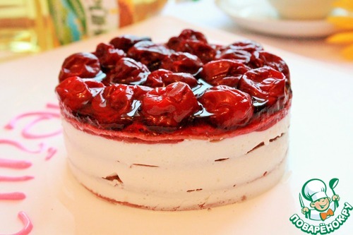 Делаем желе согласно инструкции. В формы выкладываем ягоды и поливаем все желе. Отправляем в холодильник. У меня один тортик с вишней, а другой с ежевикой. Желе вишневое.
