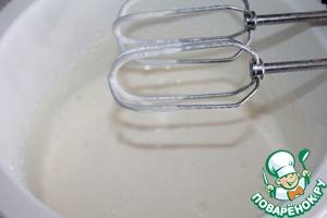 Добавляем молоко и постепенно муку. Взбиваем.