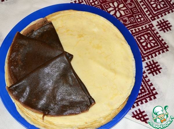 Для кекса нам понадобится: 9 белых блинов и 4 шоколадных!