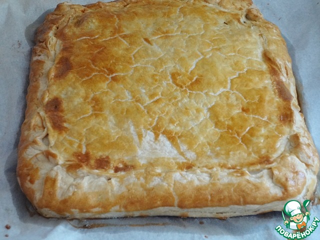 Пирог из слоеного теста с сочной начинкой с ноткой лимона. Очень вкусно!