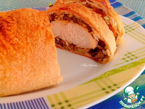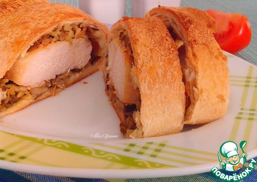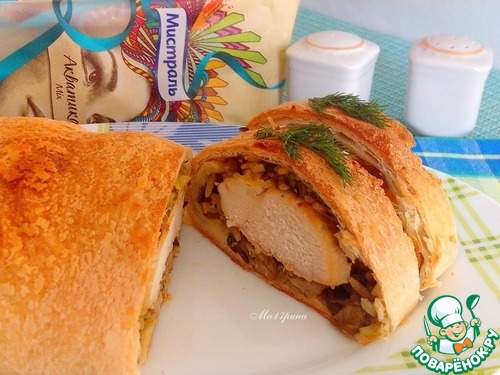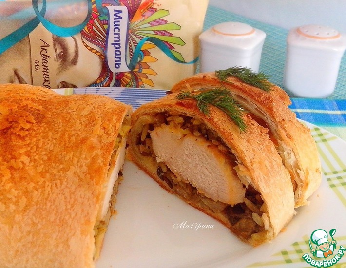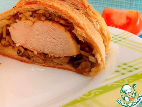 Куриное филе в слоеном тесте с грибами
