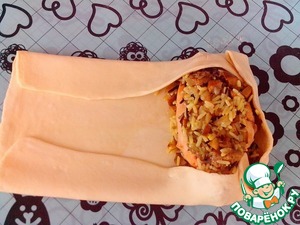 Завернуть края теста, чтобы не высыпалась начинка.