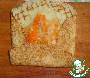 Овощную начинку кладем на середину блина и сворачиваем его..