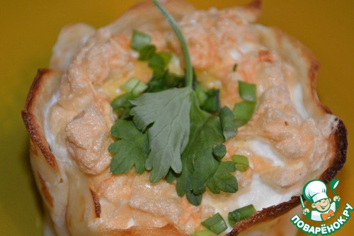Да в общем-то ничего особенного, рецепты не новые, просто идея в блинных корзиночках.