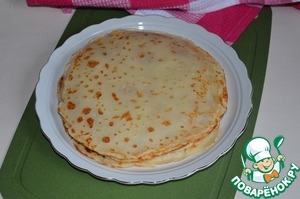Если блинчики выпекались накануне вечером, то лучше предварительно их чуть-чуть прогреть (по пол-минуты) в СВЧ.
