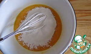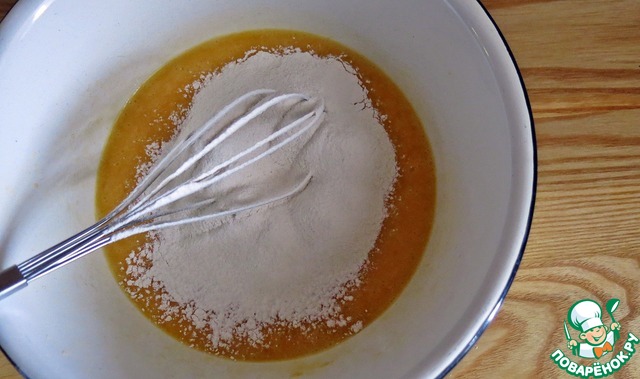 Затем добавляем просеянную муку и размешиваем до однородности.