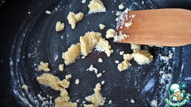 В другой сковороде, растапливаем оставшееся сливочное масло (2 ст. л.), всыпаем муку и жарим, постоянно помешивая 3 мин.