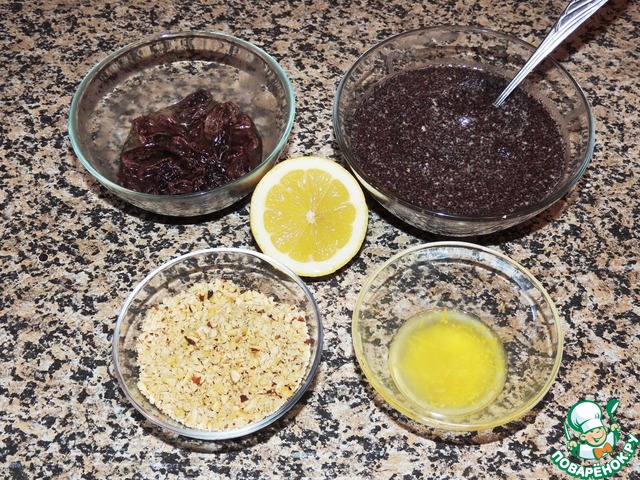 Орехи измельчить (не в пыль), с половинки лимона снять цедру мелкой теркой, выдавить сок. Изюм при необходимости замочить и порезать. Добавить все эти ингредиенты к маковой смеси. При желании влить в начинку 2-3 ложки ликера или коньяка.