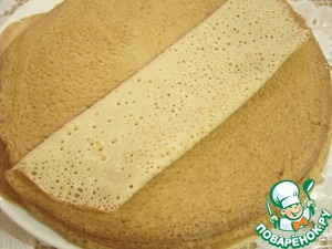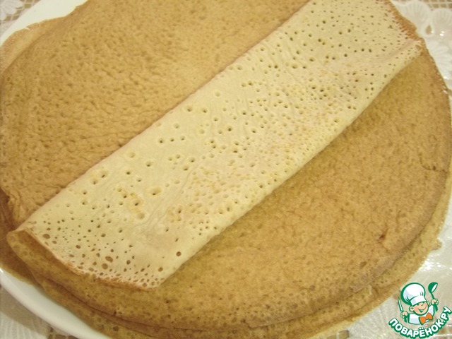 Выпекаем тоненькие блинчики. У меня получилось 19 штук. Вот такие они получились красавцы - тоненькие и дырчатые.
