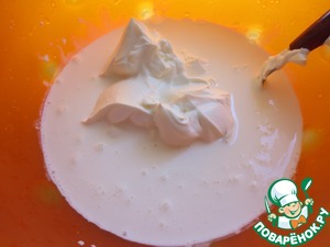 Теплый желатин добавляем тонкой струйкой в крем и хорошо взбиваем. Крем готов.