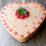 Готовый торт вынимаем из формы. Украшаем по желанию. Я использовала какао-порошок, сахарные сердечки и ореховое печенье.