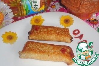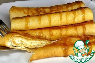 Сковороду разогреваем, хорошо смазываем растительным маслом Олейна, выкладываем блины и жарим до корочки с двух сторон. Переворачиваем аккуратно при помощи лопатки и вилки, чтобы не вылетела начинка