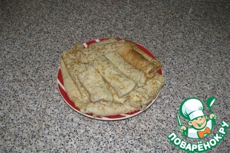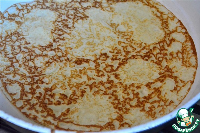 Смазываем сковороду растительным маслом и выпекаем тонкие блинчики, с двух сторон до румяного цвета (рекомендую брать большую сковородку)