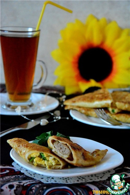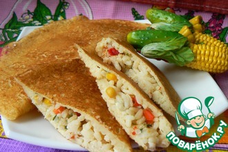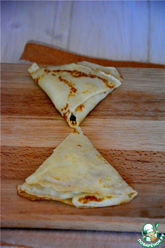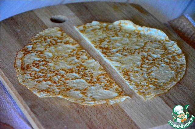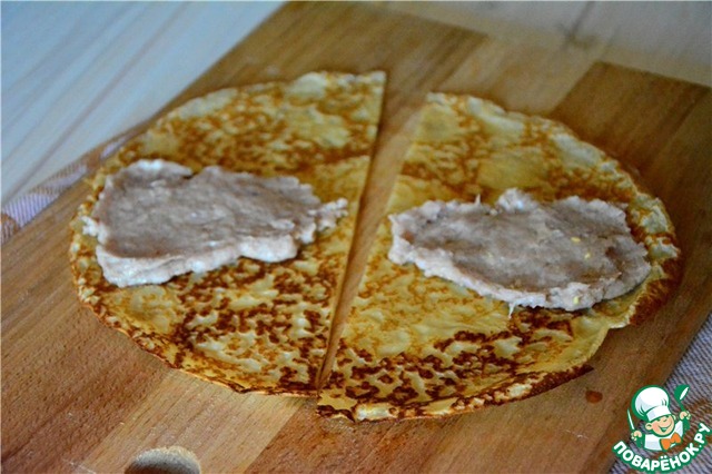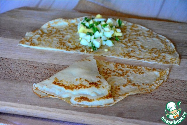 Выкладываем начинку в середине блина