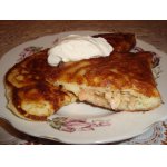 Я с Украины, мы покупали ( каюсь, жарила полуфабрикаты) и с фаршем, и с творогом ( с изюмчиком), и с печенкой. В общем, начинка может быть разной, главное идея и подача!!