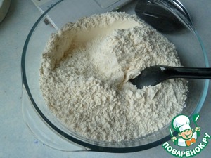 • Постепенно добавляем муку. Тесто не должно быть крутым. Оно будет немного липнуть