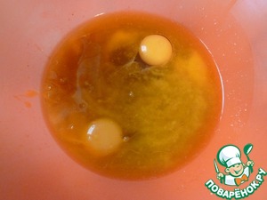 • В полностью остывший пережженный сахар добавляем 2 желтка и 1 целое яйцо.