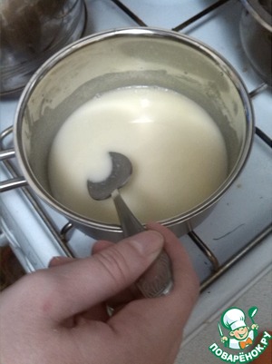 Добавить постепенно бульон (или воду), постоянно помешивая.
