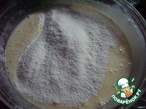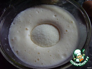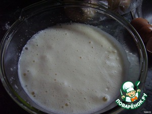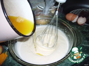 осторожно влить его в яично-сахарную смесь, продолжая взбивать