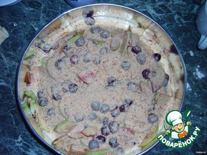 выложить остатки теста и обсыпать крошкой. Выпекать при 180 град. 25-30 минут.