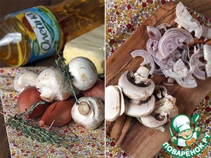 Тем временем приготовим вторую начинку, из книги Гордона Рамзи - карамелизованный шалот с грибами.