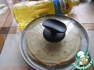Блины выкладываем на тарелку и накрываем крышкой. Так они останутся мягкими.