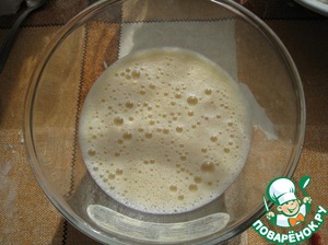 Яйца взбить. Добавить молоко комнатной температуры, сахар, соль и снова взбить.