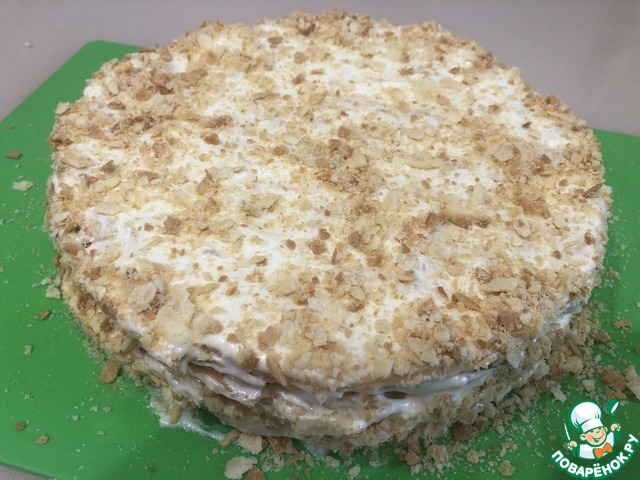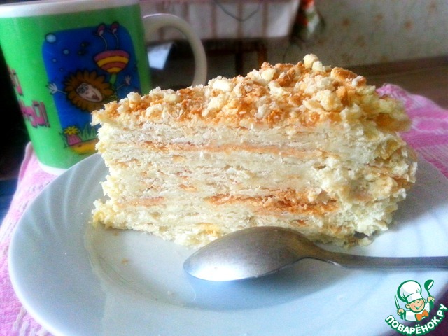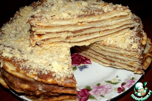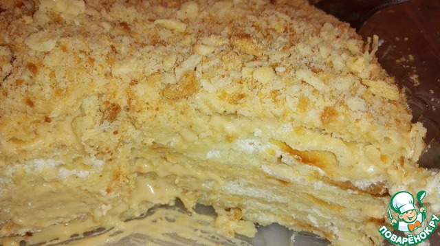 P.S. В моей семье вот такой вариант со сгущёнкой и маслом называется сухой Наполеон, а есть мокрый -это заварной крем на желтках и масло