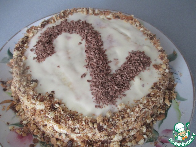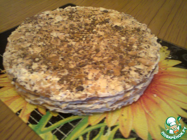 Оставшиеся 4 коржа промазываем кремом без шоколада, приминаем и... наш "Наполеон в шоке" готов. -