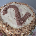 Вот наш тортик с утра перед поездкой на праздник, где он был разрезан и "сдегустирован" моими гурманами, которые после поедания сказали, что это песня, а не торт!