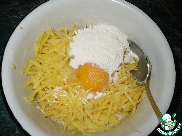 Для блинчиков картофель натереть на тёрке для корейской моркови (или на крупной тёрке) -