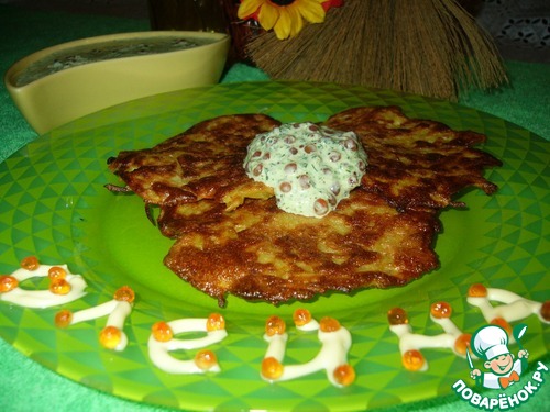 Рецепт «Зелёный соус с икрой к картофельным блинчикам»: