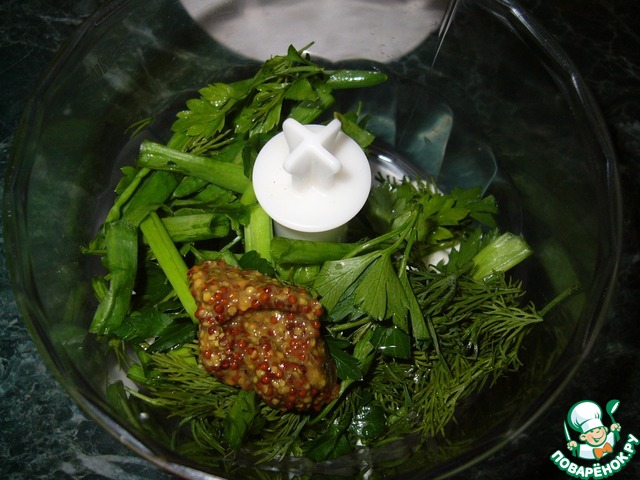 Ингредиенты для «Зелёный соус с икрой к картофельным блинчикам»: