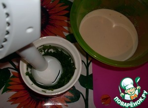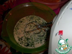 Измельченную зелень добавляем к одной части блинного теста и хорошенько перемешиваем.