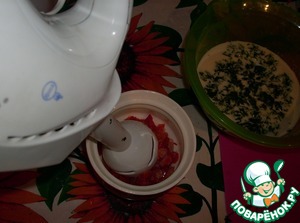 Зелень укропа, петрушки, сельдерея (можно любую зелень вам по нраву) очень мелко нарезаем и измельчаем как можно мельче с помощью бытовой кухонной техники.