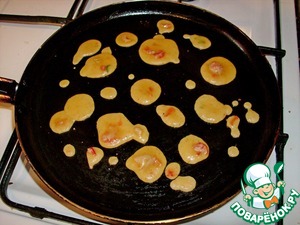 На разогретой сковороде начинаем украшать наши блинные полянки,