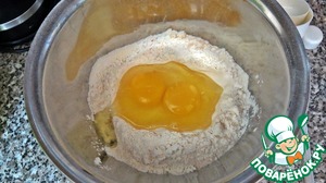 Приготовим тесто. Муку и разрыхлитель просеиваем в миску. Добавляем яйцо, сахар, соль и ванилин.