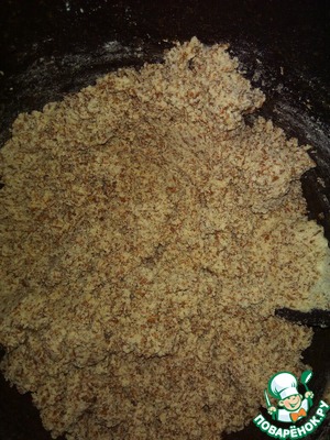 Стружка должна полностью обжариться так, чтобы не осталось белых стружек. Выключаем огонь и охлаждаем массу: для этого можно подержать кастрюлю в холодной воде.
