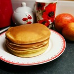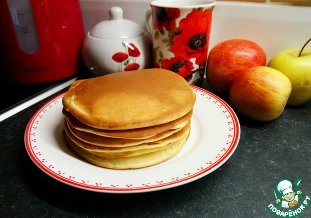 2. Пока замораживается груша, испечь панкейки. Яйца взбить с содой, сахаром и солью.