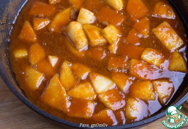 6. Добавить груши и перемешать с карамелью. Дать постоять пару минут.