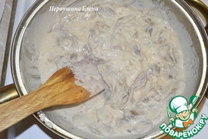 Положить сметану, хорошо размешать, довести до кипения и тушить на маленьком огне, пока не загустеет (не выпарится вся вода). Но если любите пожиже, то сильно не уваривайте.