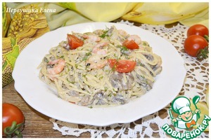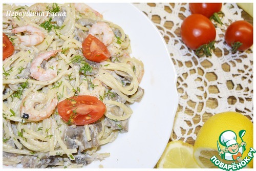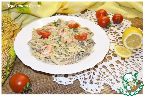 Сытное, ароматное и очень вкусное блюдо! Отличное сочетания грибов и креветок - угощайтесь!
