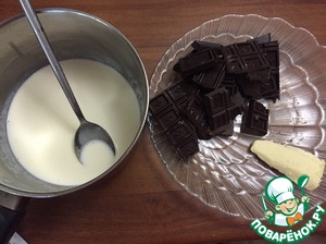 Сливки подогреть, но не кипятить, снять с огня, добавить шоколад, масло. Все перемешать, убрать в холодильник на 6-7часов