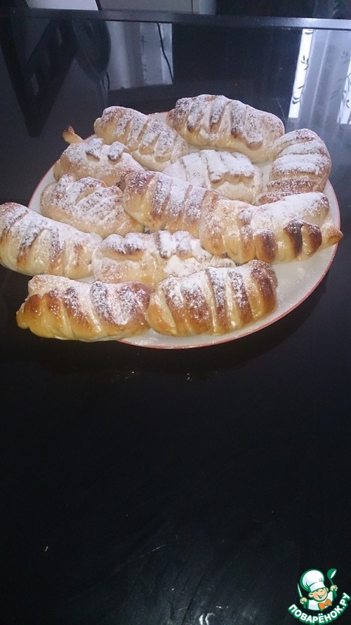 Протвень застилаем пергаментом, выкладываем булочки и даем им расстояться 30мин под полотенцем (сухим), смазываем желтком и отправляем в духовку 180 градусов 15 мин. Когда булочки остынут можно украсить их сахарной пудрой.