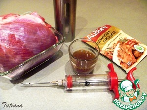 с помощью шприца-маринатора сделайте пряные "уколы" в самые толстые места бедра индейки.